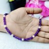 Embrace a blend of classic elegance and bohemian sparkle with this stunning Amethyst Crystal and Pearl Beaded Chain. This handmade piece features an alternating pattern of deep purple, faceted amethyst-coloured crystal beads and smooth, lustrous white faux pearls. The brilliant colour and sparkle of the crystals contrast beautifully with the soft, classic pearls, making this a truly eye-catching accessory. It’s versatile enough to be worn as a delicate choker, a layered necklace, or a stylish bracelet/anklet. Amethyst is often associated with calm and protection, making this a meaningful gift.