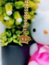A simple gold-toned chain featuring an elegant, open-work crown pendant, symbolizing royalty and empowerment.